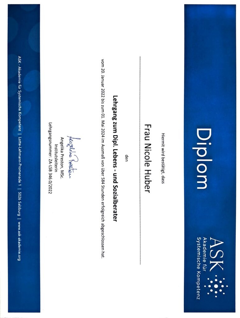 Diplomierte Lebens- und Sozialberaterin (Psychosoziale Beraterin)